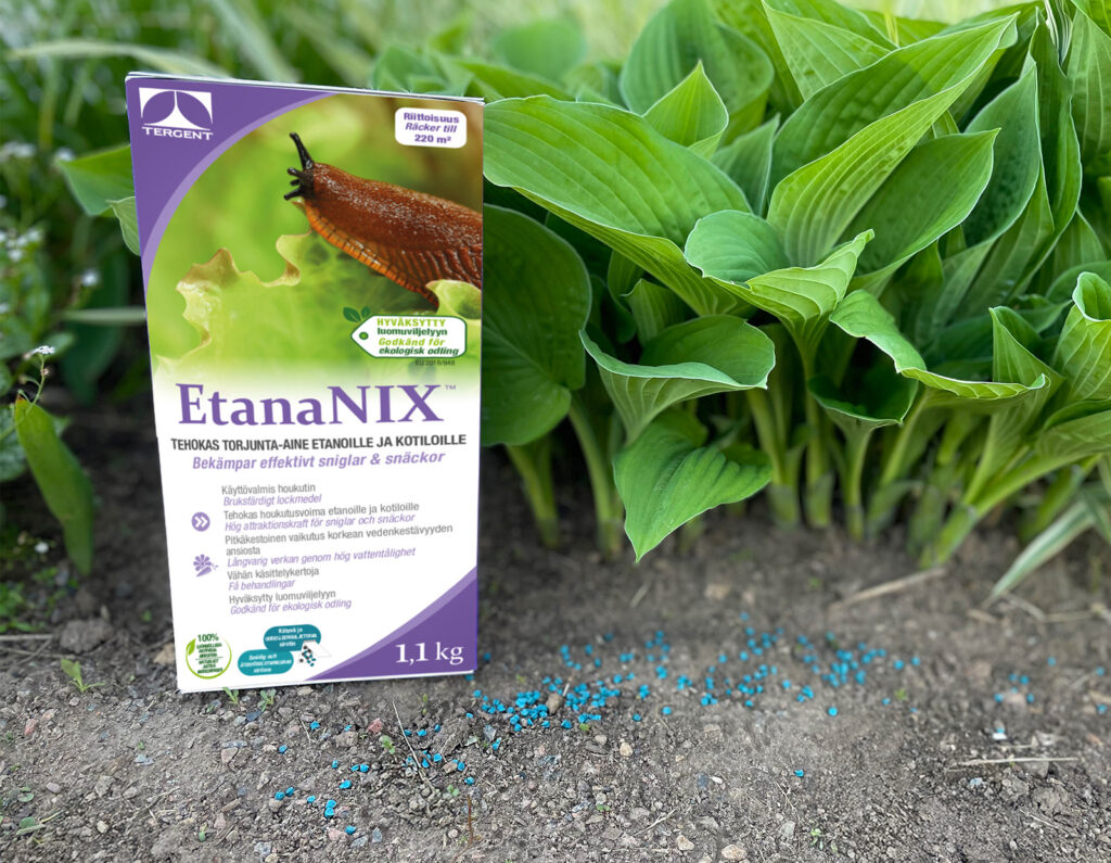 Onneksi on olemassa todella tehokkaita torjunta-aineita, kuten EtanaNIX. Se sisältää luonnollisia aineita, kuten hiivaa, perunaa ja rautafosfaattia, joka saa etanat menettämään ruokahalunsa. Tämä puolestaan johtaa siihen, että etanat eristäytyvät ja kuolevat nälkään. Ainutlaatuisen luonnollisia aineisosia sisältävän koostumuksen ansiosta EtanaNIX on sekä ystävällinen ympäristölle että kova etanoille. Voit käyttää sitä hyvällä omallatunnolla lasten, kotieläinten ja kaikenlaisten kasvien läheisyydessä.